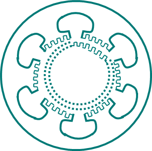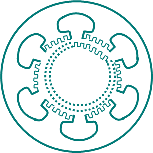 為使轉、定子的齒對齊,定子磁極上的小齒,齒寬和齒槽和轉子相同。